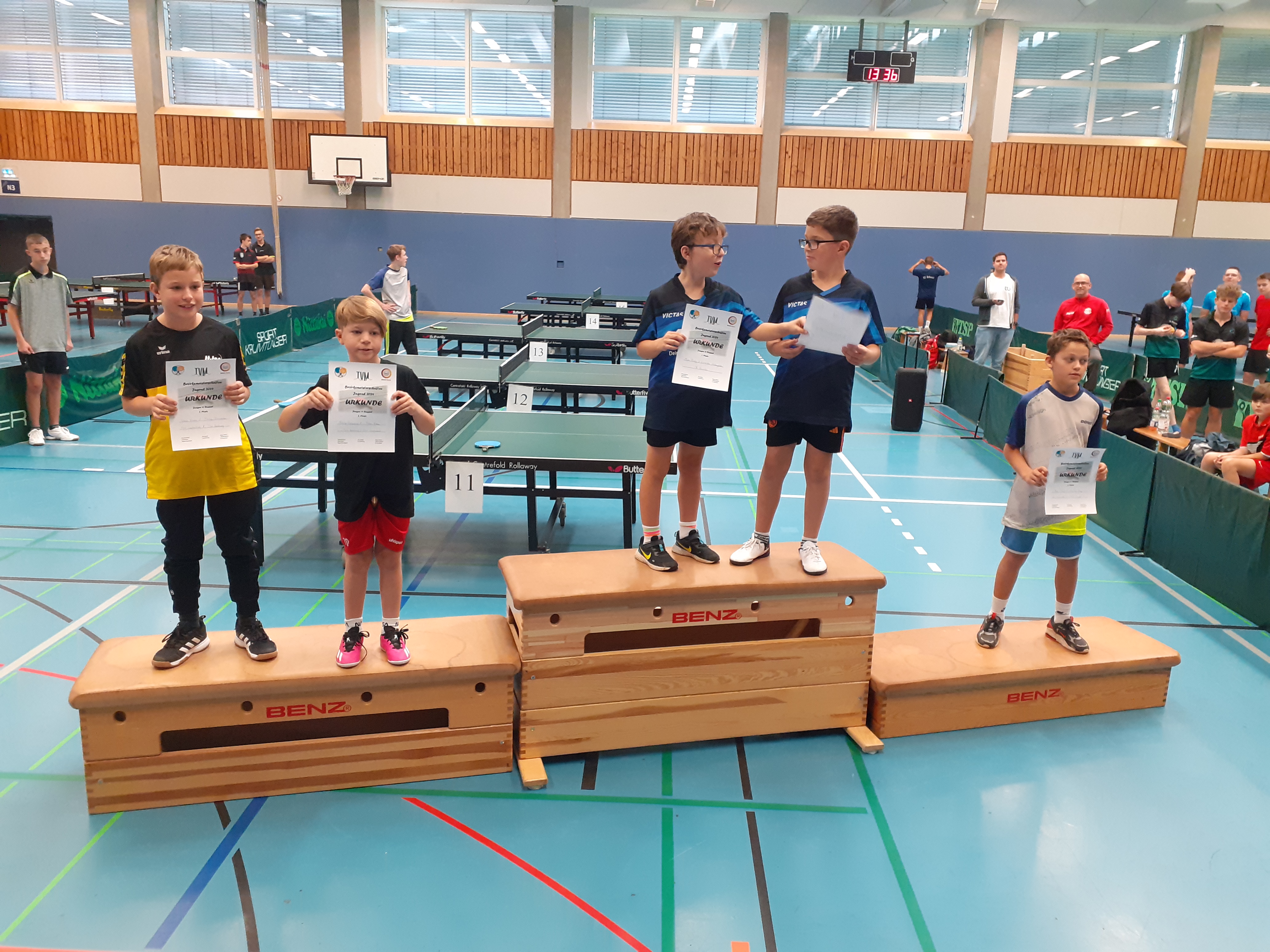Luca Herold war hier unter den Mitfavoriten, während Nicolas Vögele, Tibor Sieber und Elia Bauer ihr erstes Turnier bestritten. Während Tibor und Elia als Gruppendritte und je einem Einzelerfolg ausschieden, erreichten Luca als Gruppensieger und Nicolas als Zweiter die K.o.-Runde. Im Achtelfinale schied Nicolas recht unglücklich mit 9:11 im fünften Satz aus. Luca schaffte es ins Viertelfinale, in dem er ähnlich unglücklich mit 10:12 gegen den späteren Bezirksmeister ausschied. Im Doppel trafen Luca und Elia nach einem Erfolg im Viertelfinale auf die Topgesetzten und späteren Meister und schieden aus. Dagegen schafften es Nicolas und Tibor ins Halbfinale mit einem knappen Fünfsatzerfolg und freuten sich über die Urkunde und den dritten Platz.